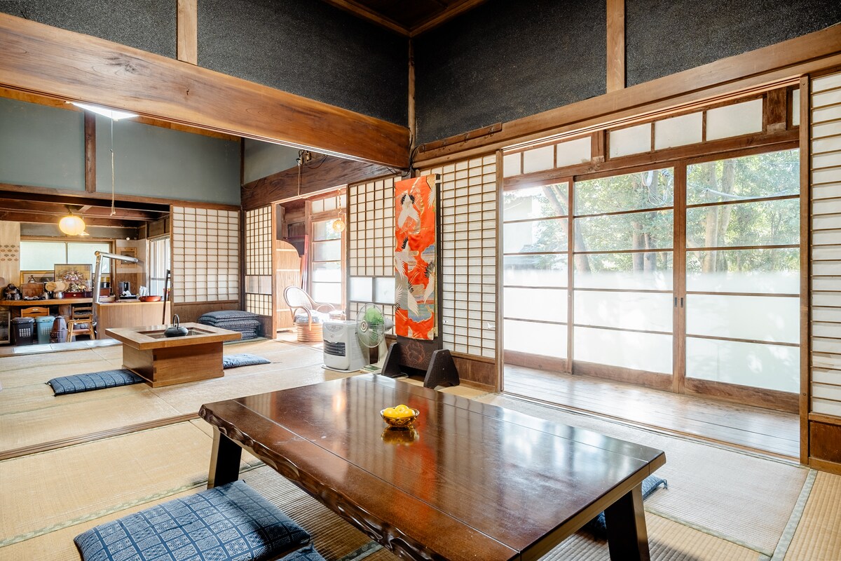 Весь будинок - це окрема кімната, яка була відремонтована самим власником. Це відремонтоване помешкання, прикріплене до старого будинку, побудованого 70 років тому. Уся ізоляція натуральної вовни покрита стелями, стінами та підлогою. Стеля, деякі стіни - кедр Tenryu, стіни - іспанська штукатурка, підлога виготовлена з кедра Tenryu та вітчизняних килимків Igusa татамі, а простір в основному виготовлений з натуральних матеріалів від дна до кінця. Зокрема, кухонний стіл - це річковий стіл ручної роботи від власника, який призначений лише для одного у світі. У помешканні є власна кухня, туалет і ванна кімната, тому це чудове місце для пари або сім 'ї, які хочуть провести приватний час.