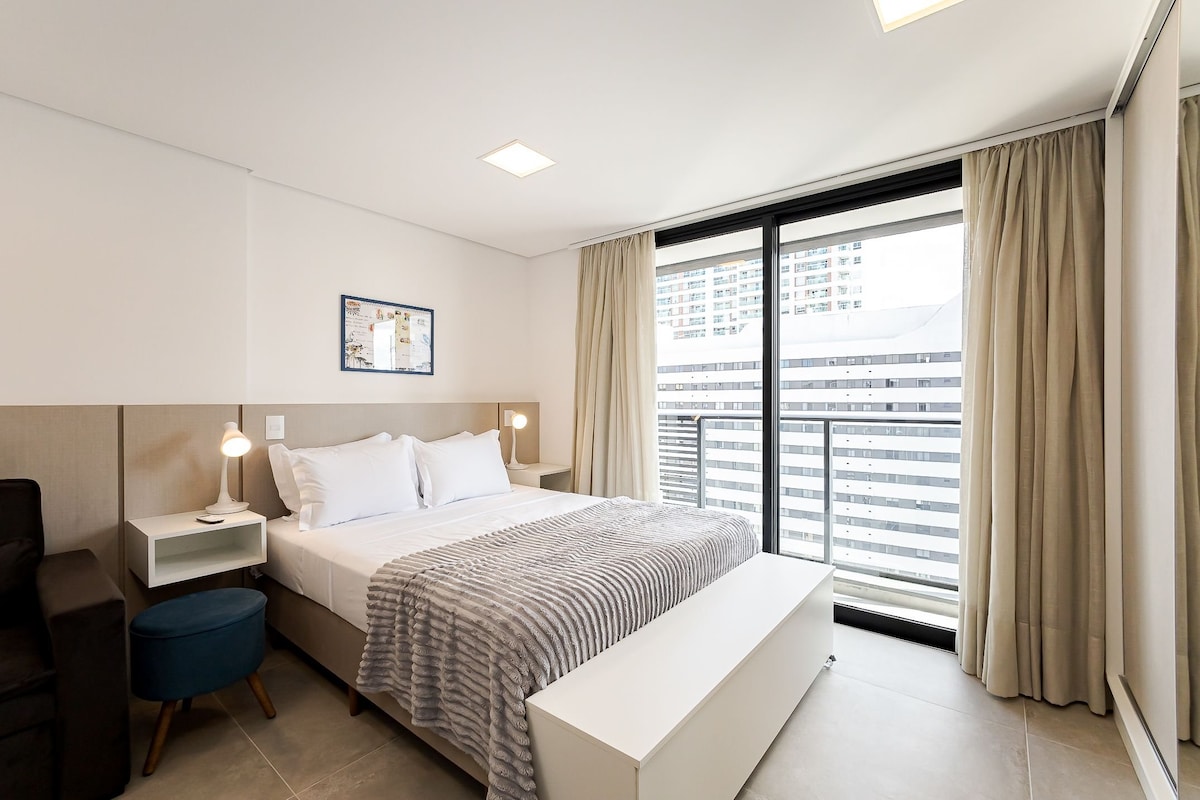 Красива квартира, розташована в центрі міста. Поруч із богемним районом Батель, це місце розраховує на безліч магазинів і торгових центрів, таких як Shopping Crystal і Shopping Pátio Batel, Rua 24 horas. Ідеально підходить для двох осіб, є вітальня/їдальня, одна спальня, повна ванна кімната та повністю обладнана кухня. Помешкання також враховується: Wi-Fi, смарт-телевізор, кондиціонер, гаряча та холодна, гаряча та холодна вода на кухні та у ванній кімнаті. Ми надаємо постільну білизну та банні рушники.