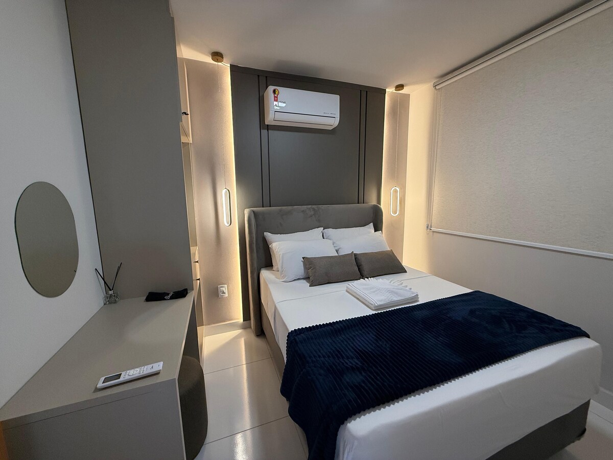 Studio Cuiabá Нова, затишна квартира, відчуйте себе як вдома в столиці, центральний регіон, за кілька метрів від торгового центру Estação, супермаркету Assai, лікарень, ресторанів та барів. 15 хвилин від аеропорту Зона відпочинку з тренажерним залом і басейном на даху. Пральня на першому поверсі. Паркувальна зона. Усе нове! Ласкаво просимо до Cuiabá MT!