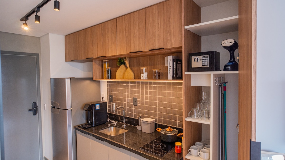 Студія з високим стандартним декором призначена для короткострокового та середнього перебування. Ідеально підходить для пар або друзів, які подорожують для відпочинку, роботи або навчання, з гнучким двоспальним або односпальним ліжком. Квартира за 50 метрів від станції метро «Белен» на тихой вулиці. Ресторан, бар, аптека, ринок навколо, а також два торгові центри до станції метро. Найкраще співвідношення ціни та якості в регіоні для тих, хто хоче піти за покупками, Ав. Пауліста, Меркадан, Храм Соломона, Анклівепа та інші об 'єкти.