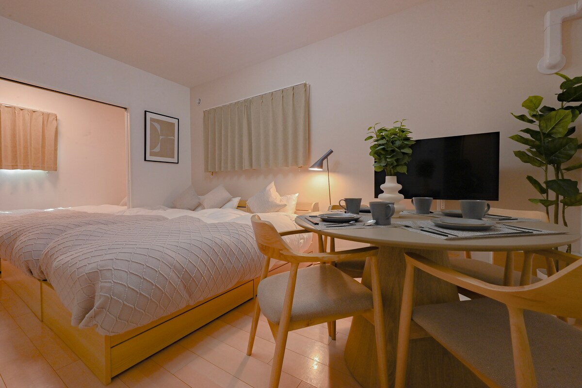 Ласкаво просимо до нашого помешкання! Бажаю вам приємно провести час і чудової подорожі. Ми підготували просту та елегантну кімнату.Це спокійне місце, де можна розслабитися на просторому ліжку.Завдяки чудовому розташуванню прямо біля станції та повному набору зручностей ви можете насолоджуватися комфортним перебуванням, незалежно від того, чи ви зупинилися на короткий, чи на тривалий час.Насолоджуйтеся незабутнім часом, насолоджуючись зручним перебуванням у місті. Новий об'єкт розміщення в районі Нагої, який відкриється в березні 2026 року. Ідеально підходить для групових поїздок із родиною та друзями.До популярних місць, таких як Осу Каннон, акваріум порту Нагоя та замок Інуяма, також легко дістатися, тому ви можете насолоджуватися оглядом визначних пам’яток та шопінгом на повну. Доступ 3 хвилини пішки від станції «Фукіаге» на лінії метро «Сакурадорі». Дістатися до станції Нагоя та основних туристичних напрямків також легко. Про кімнату У ньому можуть розміститися до 5 осіб. Рекомендовано для сімейних подорожей, друзів і пар. 2 двоспальних ліжка 1 односпальне ліжко [Прибуття та виїзд] На жаль, ми не приймаємо раннє заселення або пізнє виселення. Ми з нетерпінням чекаємо на ваш візит.