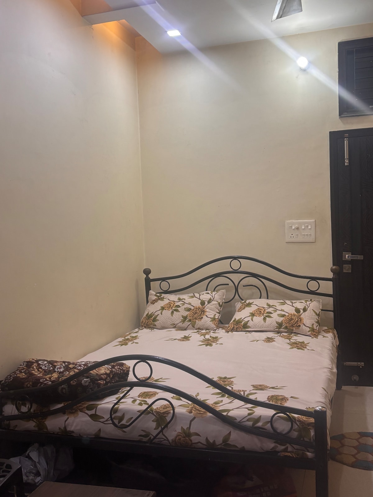 Cozy 1BHK Suite – Perfect for Peace & Comfort! Enjoy a peaceful retreat in charming 1BHK suite. The suite offers: 2 comfy double beds for restful sleep A spacious sofa for 6-8 people to relax and chat A fully-equipped kitchen with utensils, microwave, fridge, and more A refreshing bathroom with geyser & shower Safe parking for your vehicle Ideal for solo stays or up to 5, this space ensures comfort and relaxation throughout your stay. We provide Car/bike/activa on rent!