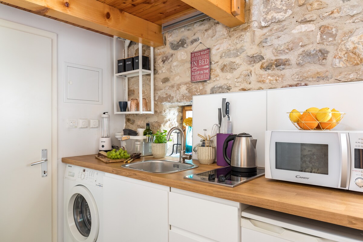 У Далмації слово «laganini» у розмовній мові означає: сповільнити темп, насолоджуватися життям, розслабитися, забути про час і всі зобов'язання. Запрошуємо вас зупинитися в нашому зі смаком відремонтованому лофті на горищі. На загальній площі 650 квадратних футів (60 квадратних метрів) ви знайдете добре продуманий план помешкання, сучасні меблі, багато романтики та нотку розкоші – і все це в оточенні старих стін із природного каменю. Відпочиньте та насолодіться видом на море, навколишні гори та дахи старого міста Варош.