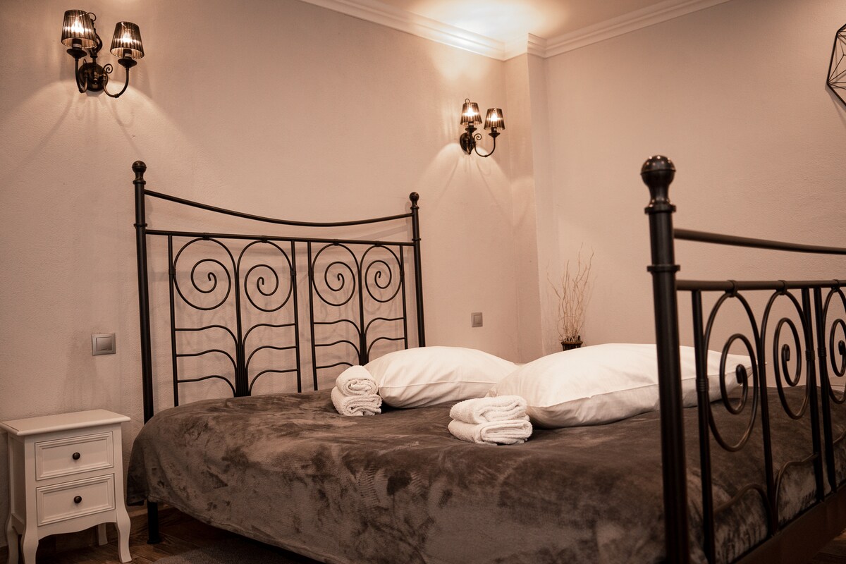 Наша квартира знаходиться всього в декількох кроках від П 'ята-Маре (Гранд-сквер) у Сібіу. Розташована в 200-річній історичній будівлі, вона має затишну спальню, вітальню зі смарт-телевізором (Netflix), швидкий Wi-Fi та повністю обладнану кухню з кавоваркою, плитою та пральною машиною. Центральне опалення підтримує тепло взимку, а кондиціонер доступний влітку. Невелика приватна тераса додає додаткового шарму - ідеально підходить для відпочинку після дня знайомства з містом.