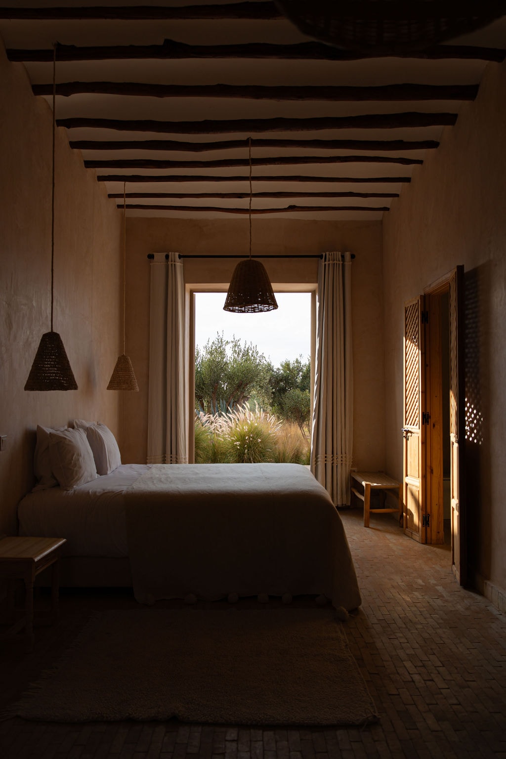 Цей заміський будинок розташований у приватному маєтку площею 2 гектари, всього за 20 хвилин їзди від Марракеша. Він пропонує 4 просторі люкси з окремими ванними кімнатами, затишну вітальню з каміном та повністю обладнану кухню. На відкритому повітрі ви можете насолоджуватися садом, обсадженим оливковими деревами, відпочиваючи під перголою, або засмагати на шезлонгах біля води. Наш доглядач на місці тепло вас прийме. Wi-Fi, постільна білизна та рушники, а також безкоштовне паркування включені.