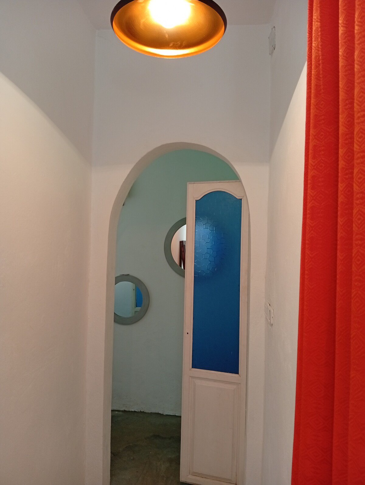 Un appartement typiquement tunisien portant le charme des bâtisses de la médina avec ces céramiques ces carreaux de ciment et ses fenêtres en bois sculptés baignant l’appartement dans une belle luminosité blanche et verte. Les fenêtres bleues sur fond de murs blancs les portes jaunes typiques de la médina de Tunis le marbres des escaliers… tout cela vous donnera l’expérience d’un réel vécu au coeur de l’envoûtante médina de Tunis.