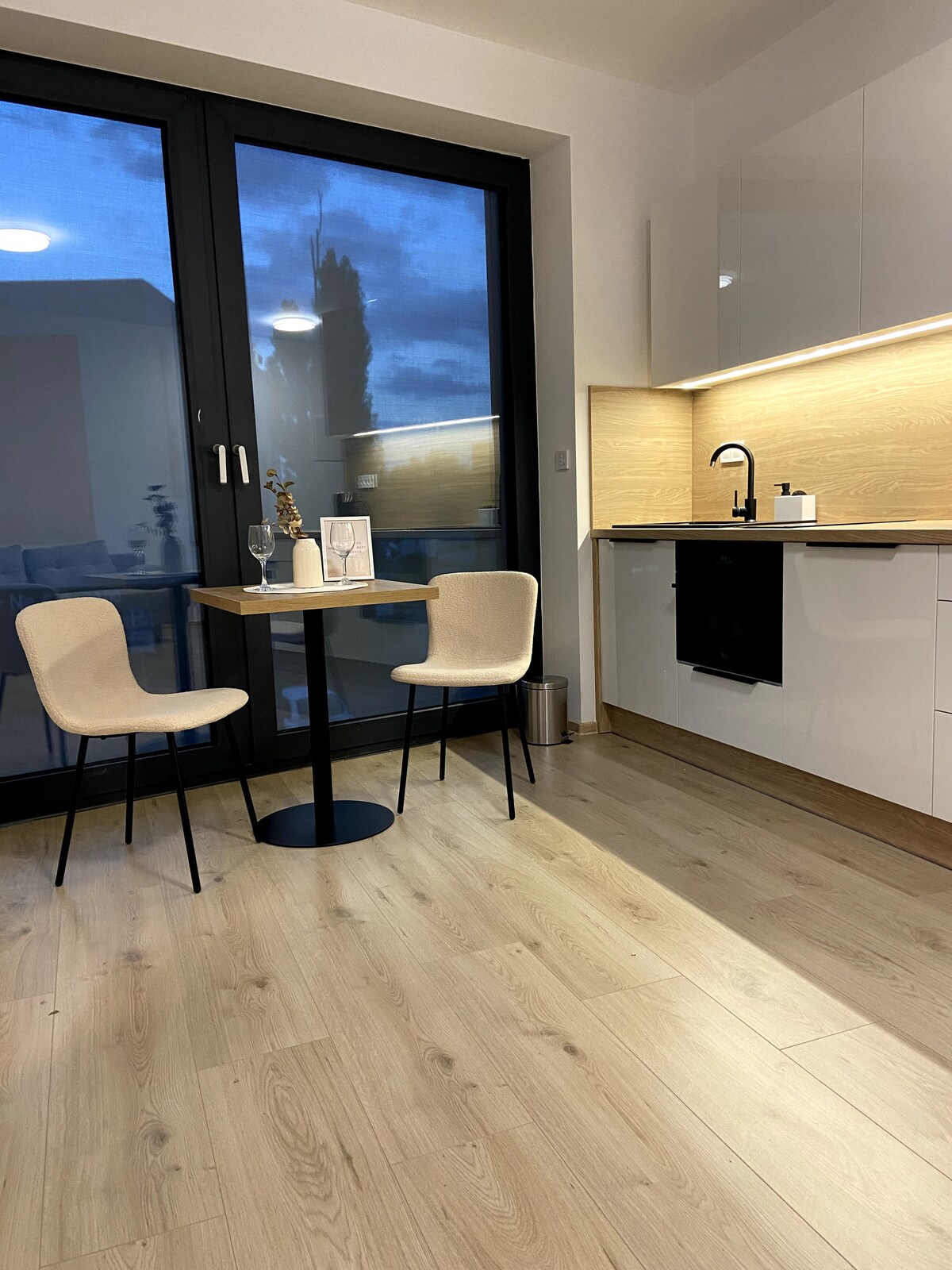 Ваша нова стильна квартира пропонує комфортне перебування до 2 осіб. Він розташований в новому маєтку всього в декількох хвилинах ходьби від центру міста. Місце повністю мебльоване (кухонна техніка, Wi-Fi, смарт-телевізор Antik тощо) і готове до вашого перебування. Безкоштовна парковка надається в спеціально відведеному підземному приміщенні. Безпека помешкання та гостей забезпечує приватна охоронна компанія.