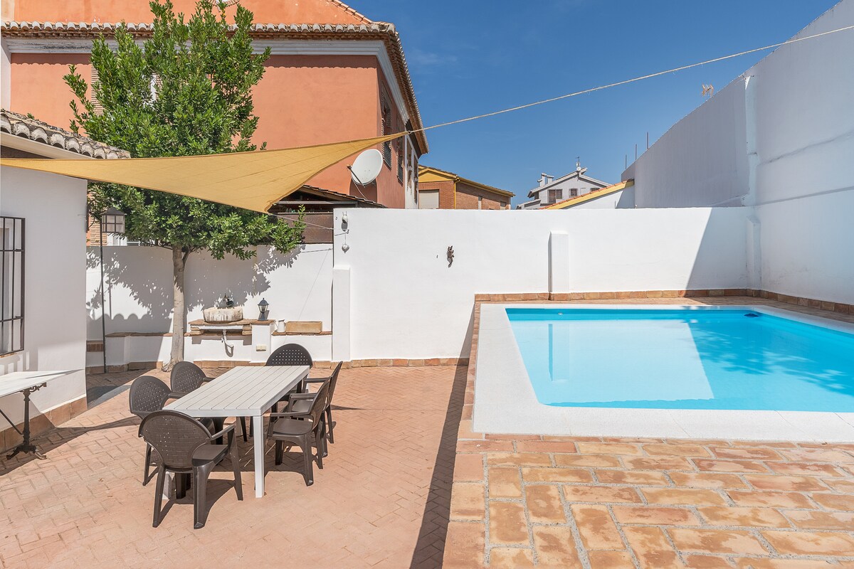 Повністю відремонтоване приватне помешкання на ділянці площею 600 м2. Тихий район, 6 км від Гранади, 20 км від Сьєрра-Невади та 49 км від Costa Tropical. Доступ до Гранади на міському автобусі та швидкий доступ до шосе. Він має три окремі кімнати та диван-ліжко (див. фотографії). Не підходить для заходів. Кухня, спальні та ванна кімната добре обладнані. На пандусі є два автомобілі. Приватний басейн і басейн.