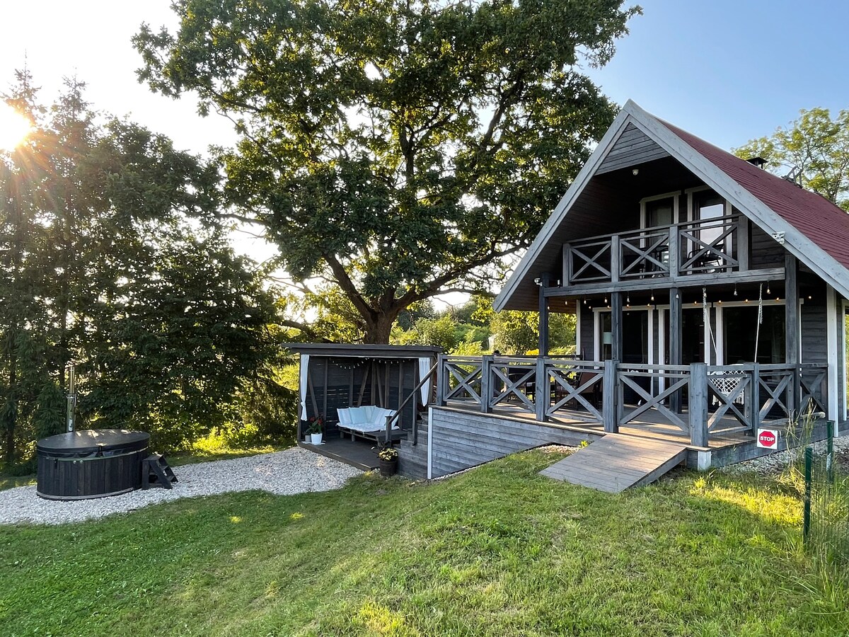 Затишний зруб із ставком для купання на самому краю долини Гауя. Чарівні краєвиди на долину. Лише 10 хвилин пішки від парку садиби Турайда, який складається з більш ніж 15 красиво відреставрованих старовинних садибних будівель, а також відомого замку Турайда. Надихаюче, тихе та спокійне місце для відпочинку для пари або сім’ї. Чудово підходить для походів по долині Гауя та відвідування міста Турайда та/або Сігулда, яке знаходиться всього в 10 хвилинах їзди на автомобілі. Ідеальне місце для міського детоксу та затишних свят.
