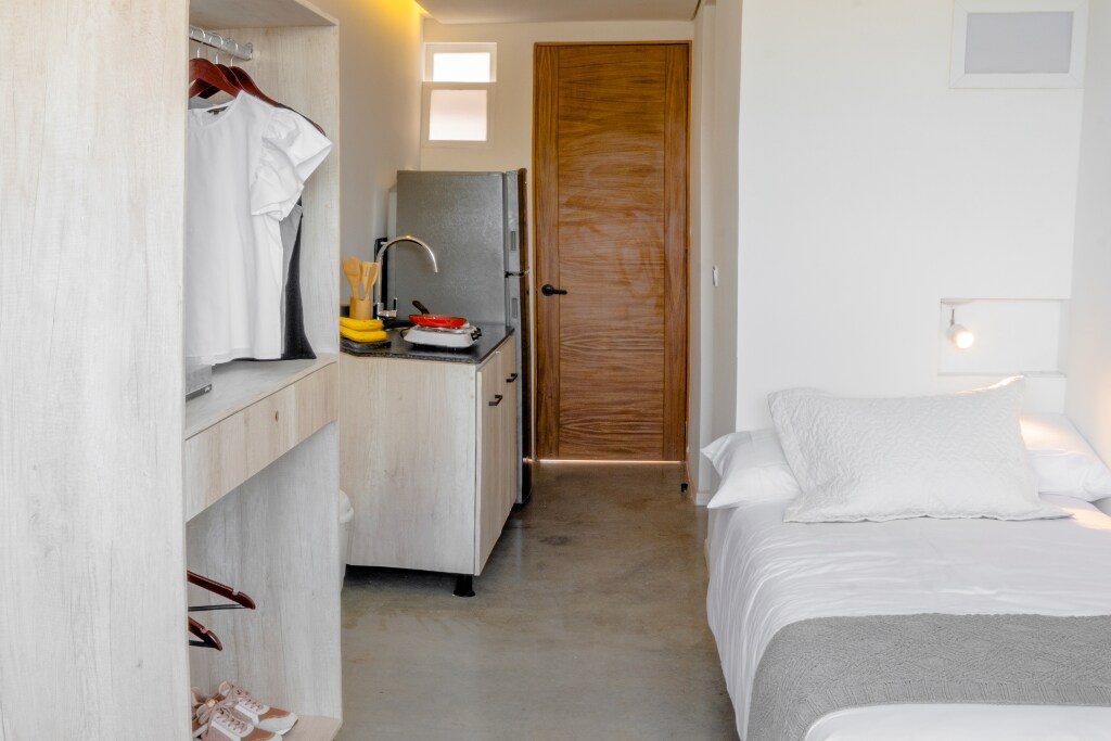 У них є кухня з гранітним баром і столярні вироби Гардеробна окрема ванна кімната з бруківкою та багажником Стіл і стільці Ліжко з подвійним матрацом з білими та подушками Електричний гриль Мікрохвильова піч Міні-холодильник Шафа на особу, перське затемнення WI-FI, замкнене спостереження по всій будівлі та зонах спільного користування. У ЦЬОМУ РАЙОНІ ЩЕ НЕМАЄ ТРОТУАРУ, АЛЕ ДО НЬОГО МОЖНА ДІСТАТИСЯ НА АВТОМОБІЛІ, ВЕЛОСИПЕДІ (ВКЛЮЧЕНО) АБО ПІШКИ