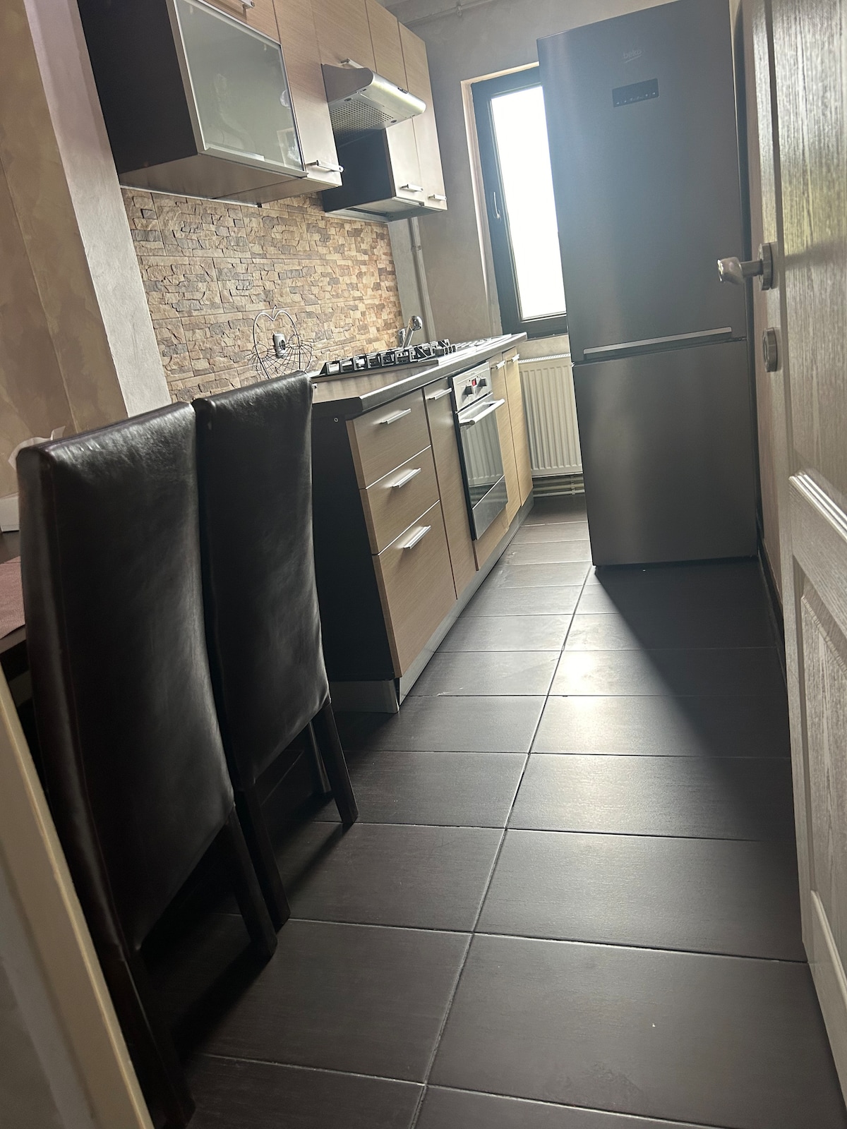Квартира розташована на першому поверсі в тихому районі з паркуванням в межах доступних місць. Розташування привітне і має 2 спальні, кожна з яких має подружнє ліжко, гардеробну та тумбочку, повністю мебльовану та обладнану кухню, ванну кімнату з ванною та просторий коридор. Ми намагаємося реагувати на всі потреби гостей, тому, якщо у вас різні потреби, повідомте нас заздалегідь. Dorim sa aveti o sedere cat mai placuta.