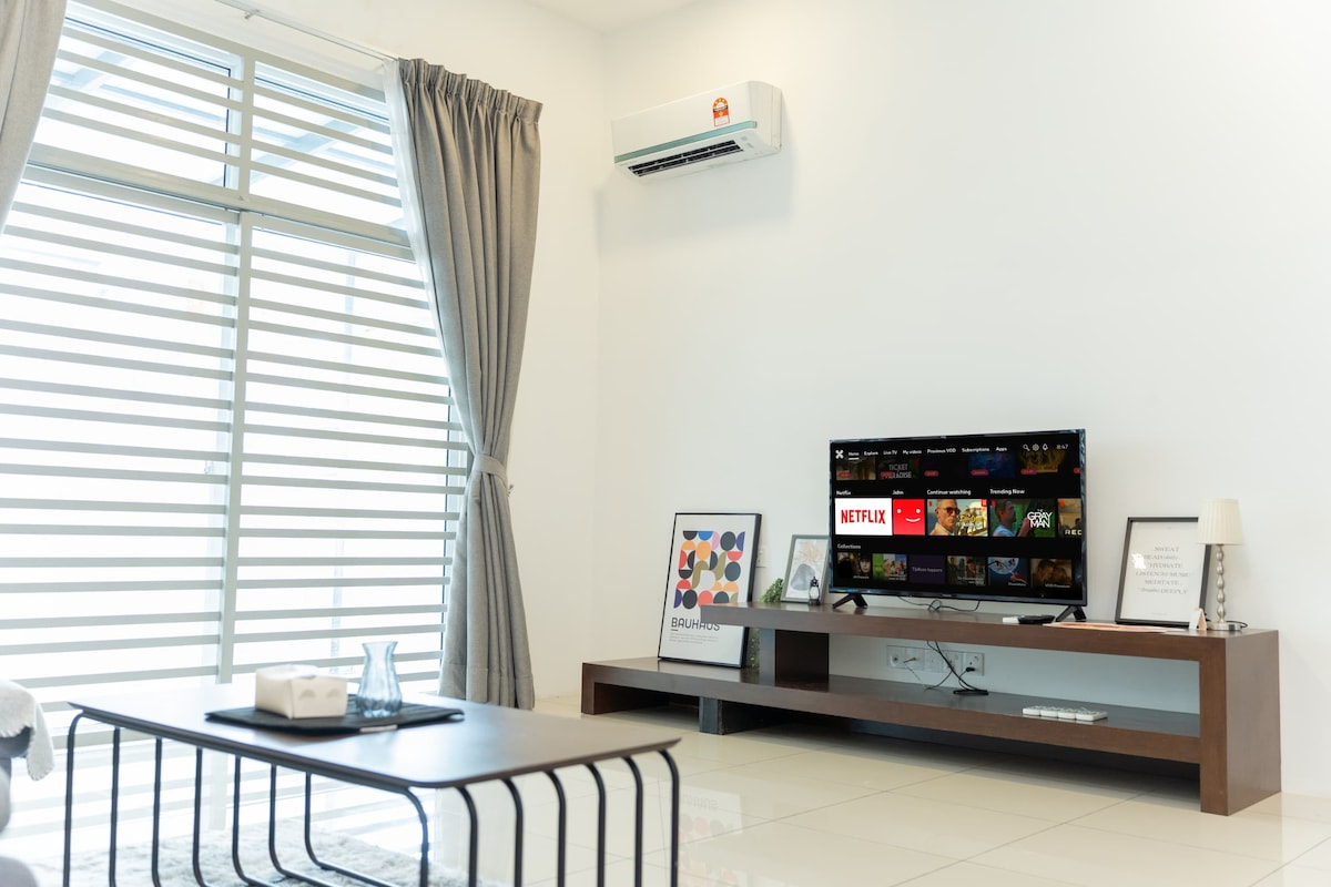 Ласкаво просимо до затишного заміського будинку! Цей стильний одноповерховий кутовий будинок повністю мебльований і обладнаний кондиціонерами, має 2 затишні спальні, 2 чисті ванні кімнати та чудовий приватний двір, ідеально підходить для сімей, пар або невеликих груп. 📍Стратегічне регіон: 5 хвилин до Alma AEON та Lotu's 10-15 хвилин до KTM BM, лікарні, Токун-Хілл, Icon City, Auto City 30-35 хвилин до IKEA, Design Village, Джорджтауна 🚗🍽️Безкоштовний паркінг | Закусочні поблизу |🌿 Спокійний район | Швидкий Wi-Fi