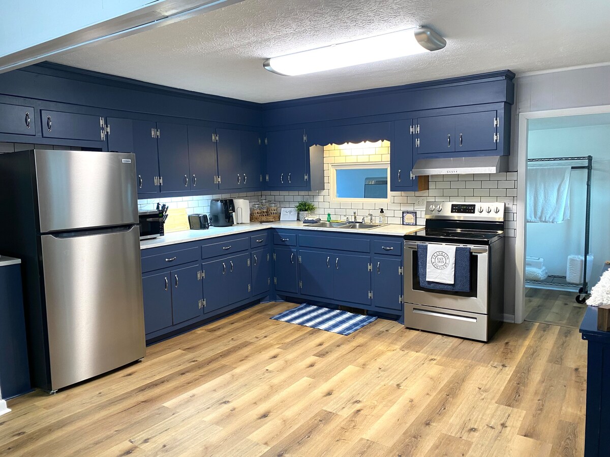 This quaint farmhouse is located in Alvaton, KY sits on one acre surrounded by 50+ acres of quiet countryside. It is just a short 10 minute drive from I-65 and for those passing through just an hour north of Nashville. We are about 20 minutes from WKU, 30 minutes from Barren River Lake, and about 45 minutes from Mammoth Cave National Park. There are also many creeks around which is a very popular summer activity in the area. We have Kayaks for rent for those interested! Pet friendly AirBNB