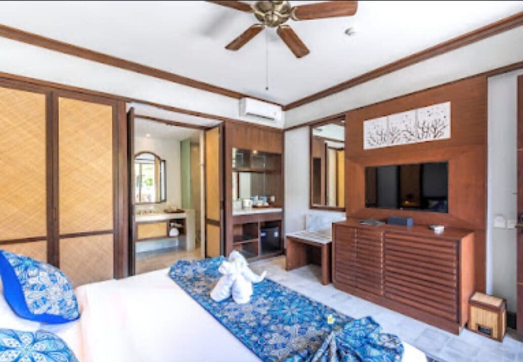 Пориньте у традиційний дизайн і комфорт зі свіжою білизною та рушниками, кондиціонером та зручними ліжками для ідеального нічного сну. У кожній кімнаті є шафа, вешалка для рушників, а також приватна зона відпочинку на відкритому повітрі для відпочинку. Прогуляйтеся до пляжу за дві хвилини, де можна побачити грайливих дельфінів або пообідати в смачних сусідніх ресторанах та Варунгах. Не проґавте пам 'ятки поблизу, такі як захоплюючі водоспади та приголомшливі храми.