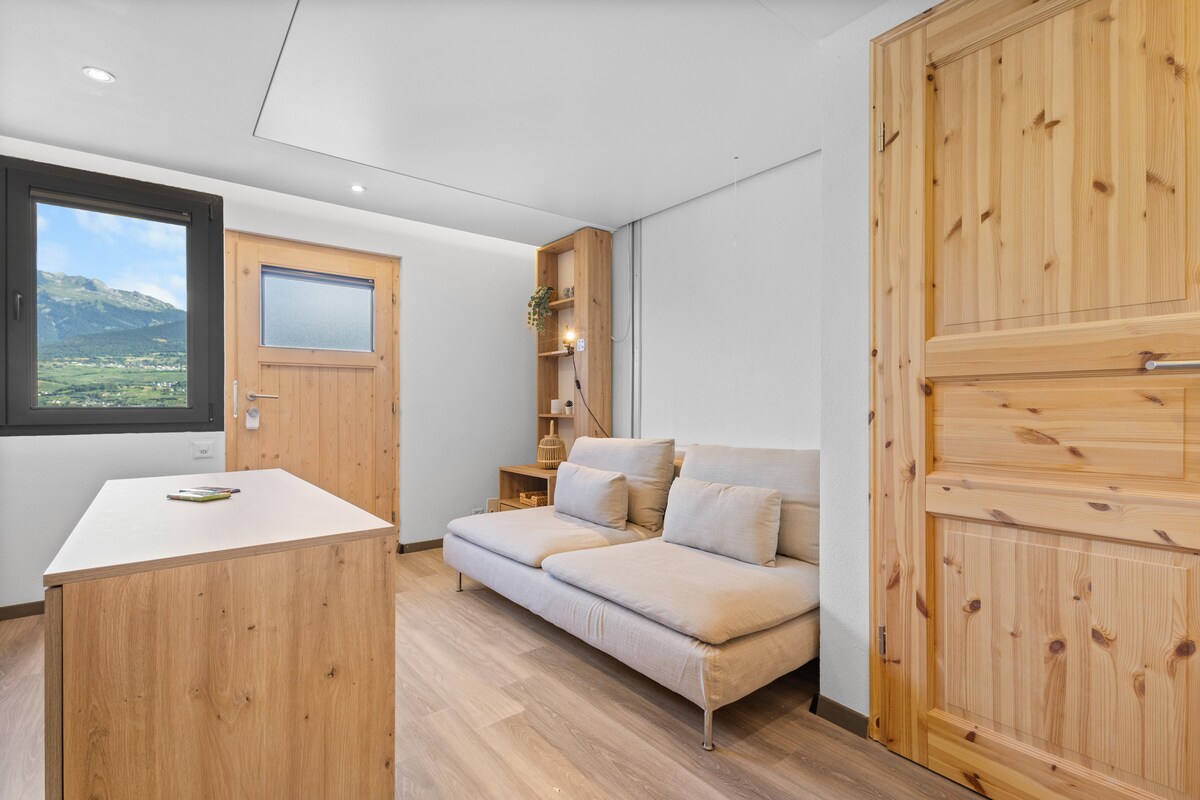 Ця студія унікальна, вона була відремонтована в 2023 році. Розташована на правому березі долини Рони. Гарна тераса. Розташована за 4 км від Сьона, в 10 км від Анзер (гірськолижний курорт) і в 16 км відКран-Монтани (гірськолижний курорт). Безкоштовний льодовий каток у селі. Близько години від Женевського озера і близько години від Церматта. Автобусні зупинки на відстані менше 100 метрів. Поруч зарядні станції для велосипедів і автомобілів, що полегшує планування екскурсій. Безкоштовна парковка. Поруч магазини та ресторани.