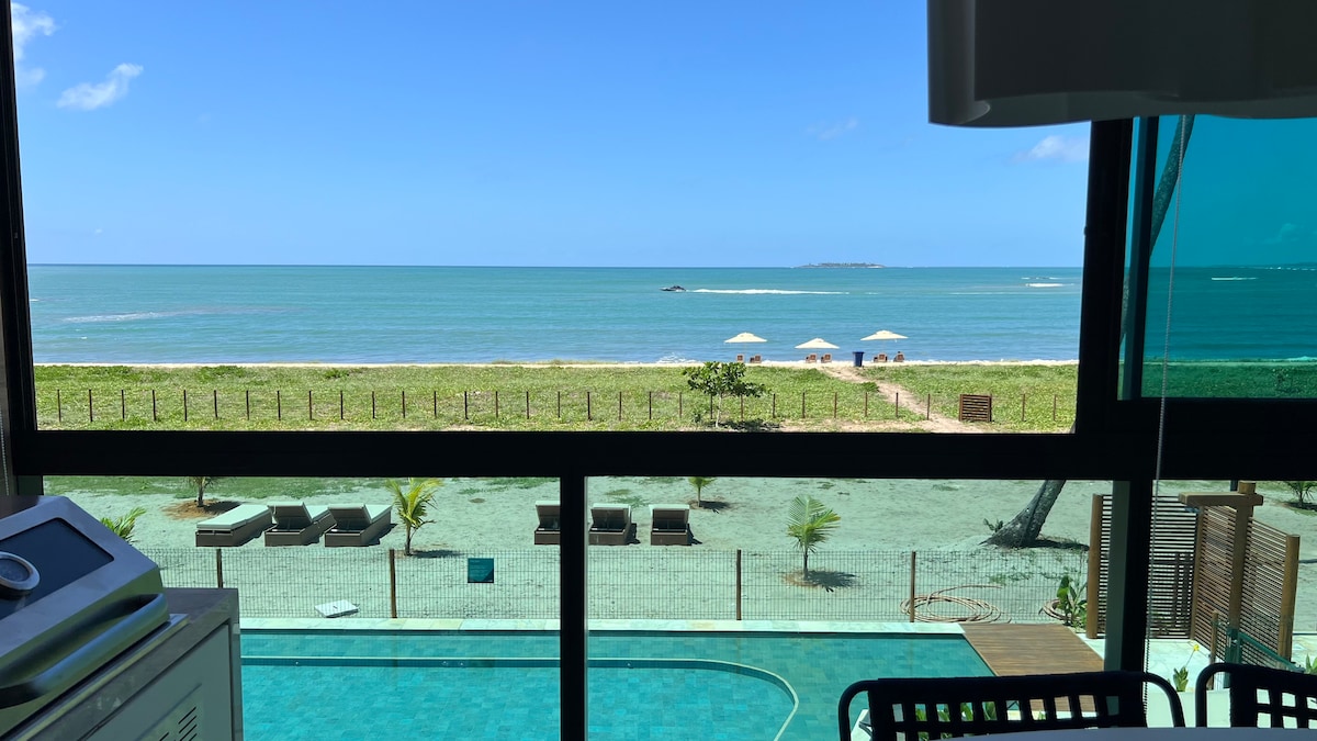 Serrambi Living Beach Exclusive Para quem busca conforto na beira mar da praia de Serrambi. Com sala e quartos climatizados, varanda integrada com espaço gourmet, churrasqueira e cervejeira, todos os eletrodomésticos inclusive maquina de lavar pratos. Tem 2 quartos frente mar sendo 1 suíte com cama queen , 1 bicama de solteiro e 1 quarto com 2 camas de solteiro que pode ficar de casal e 1 bicama de solteiro. E 1 banheiro social. Lazer: piscinas, academia, jogos, espaço kids, apoio de praia.