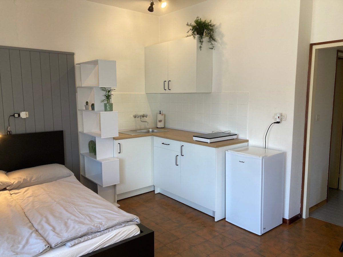 Квартира Essence - це відкритий простір з двоспальним ліжком, ванною кімнатою з ванною та душем, обладнаною кухнею, великим балконом та верандою з видом на сад будинку. Дерев 'яна підлога та дров' яна піч у центрі вітальні передають тепло навколишнього середовища. Затишна та затишна атмосфера для відпочинку та омолоджуючого перебування.