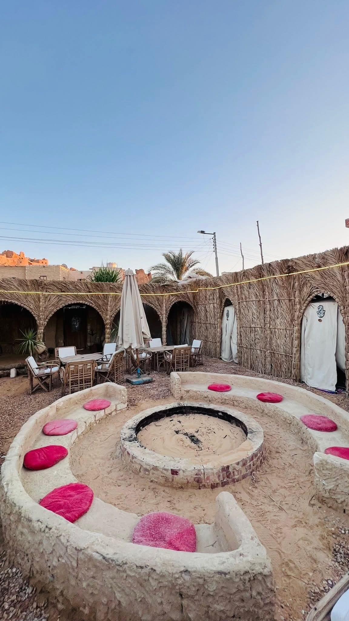 Karam Siwa Camp offers a authentic Siwa experience, facing sand dunes and a natural thermal pool to relax under the starry desert sky with bonfire🏕️ Cozy social area for meals and traditional breakfast included☕ 🍲Since we are far from markets we offer water bottle (15egp) and meals options (250egp~) 🛺 Transportation from/to Siwa (7km) by tuktuk can be arranged upon request (150egp~) 🌐No Wi-Fi, mobile data ok. The highlight is disconnecting from technology and enjoy nature 🏜️