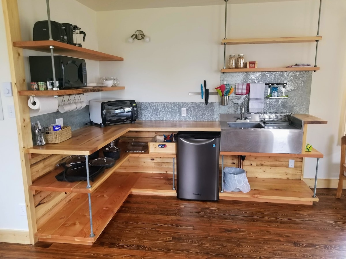 Вітаємо! Час відвезти свою сім 'ю до цього 5-поверхового лісу далеко від дому. Ця гарна квартира-студія з 1 спальнею та 2 ліжками, окремим входом, ванною кімнатою та вітальнею. З нього відкривається приголомшливий вид на озеро та гори. 10 хвилин їзди до виноробні Summerhill, яхт-клубу. Пішки можна дійти до популярних пішохідних маршрутів. 25 хвилин їзди до центру міста по дорозі на березі озера з видом на озеро Оканаган. Немає повноцінної кухні. Немає послуг Uber