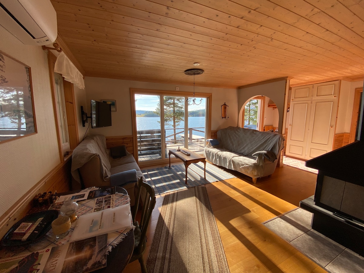 Фантастичний котедж із помешканням на березі озера! Сауна, гідромасажна ванна та човен з двигуном. Довгий пірс біля пляжу та плавучий пірс із вишкою для стрибків у воду. Котедж знаходиться в районі з 7 заміськими будинками, але повністю відокремлений від сусідів. 5 хвилин від E4. Поїздка від зрубу займе 10 хвилин. У зрубі немає електрики або проточної води. Під час перебування прісна вода подається за допомогою ємностей для води Газова плита з духовою шафою та газовий холодильник. Гідромасажна ванна доступна з Великодня до кінця жовтня. Гідромасажною ванною можна користуватися з Великодня до кінця жовтня.