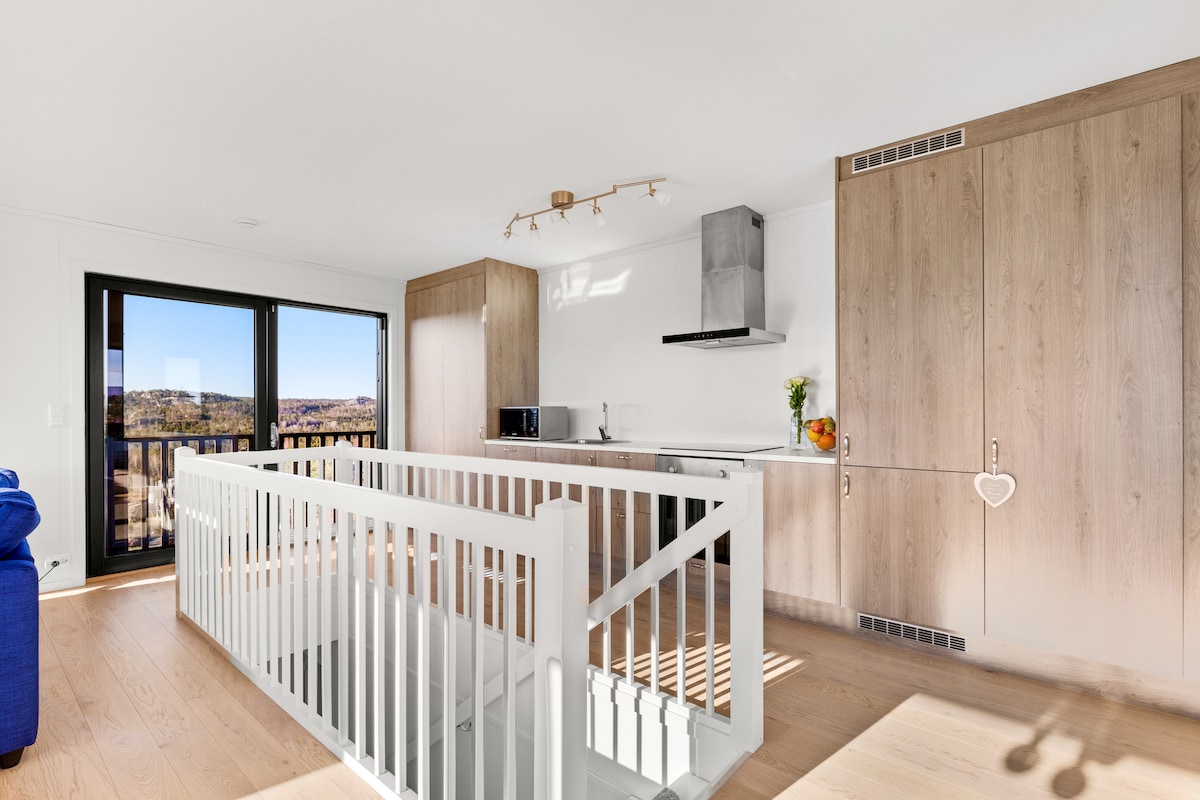 Унікальний і сучасний скандинавський дизайн. Ідилічне і спокійне оточення в гармонії з природою. Панорамний вид на фіорд. 20 хв. від Сандефйорда/1,5 год. від Осло/1,5 год. від Конгсберга альпін. Пляж перед будинком — Bronnstadbukta, район із багатою природою, ідеально підходить для дорослих і дітей. Чудові пішохідні маршрути прямо за межами помешкання, з численними популярними пішохідними маршрутами та пішохідними стежками. Красивий фьорд з острівцями та рифами, якщо ви подорожуєте на човні. Зруб також підходить для двох сімей, у ньому є 2 ванні кімнати та 4 спальні.