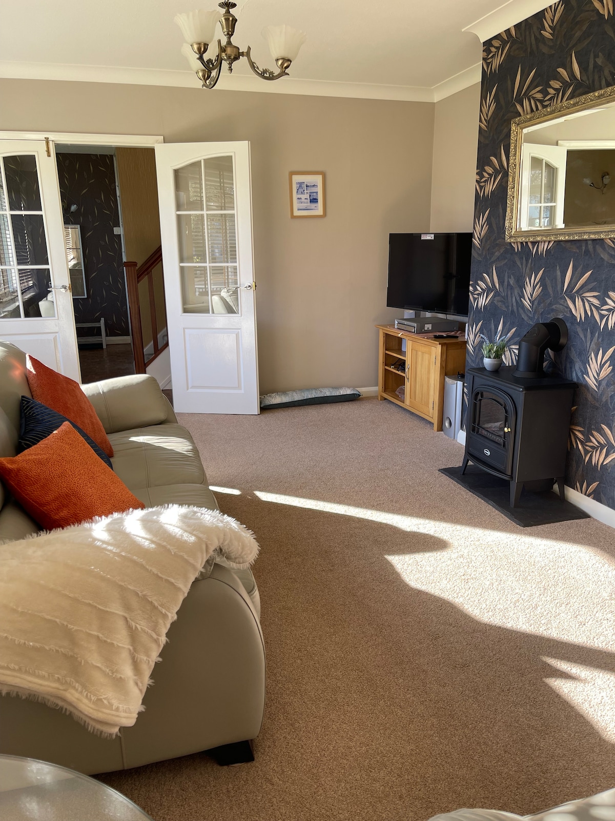 Завітайте до цього омріяного заміського будинку, розташованого в затишних сонячних садах із достатньою кількістю місць для сидіння, щоб насолодитися краєвидом. Насолоджуйтеся і відпочиньте в продуманому інтер 'єрі. Прокиньтеся в симпатичних спальнях, розташованих у карнизах, і подивіться на сад з постійним саундтреком від птахів. Розслабтеся біля дров 'яної печі або розпаліть барбекю після прогулянок, які простягаються за межами сільської місцевості, навіть якщо ви вирушаєте лише до смачного затишного гастропабу, кафе та фермерського магазину поблизу
