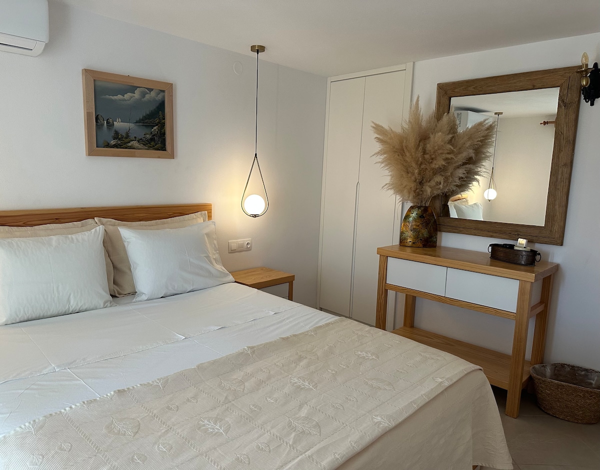 Ласкаво просимо до вашого затишного помешкання на Скіатосі! Насолоджуйтеся комфортом і спокоєм у прекрасному помешканні, ідеальному для пар, сімей або друзів. Включає Wi-Fi, кондиціонер і повністю обладнану кухню. Відпочиньте в барвистому саду після дня досліджень. Чудове розташування: всього в 5 хвилинах ходьби від пляжу та менше 10 хвилин від порту. Поруч: міні-маркет, кіоск, овочевий магазин, кафе, ресторани та автобусна зупинка (всього в 2 хвилинах). Відчуйте магію Скіатоса з усіма зручностями дому!