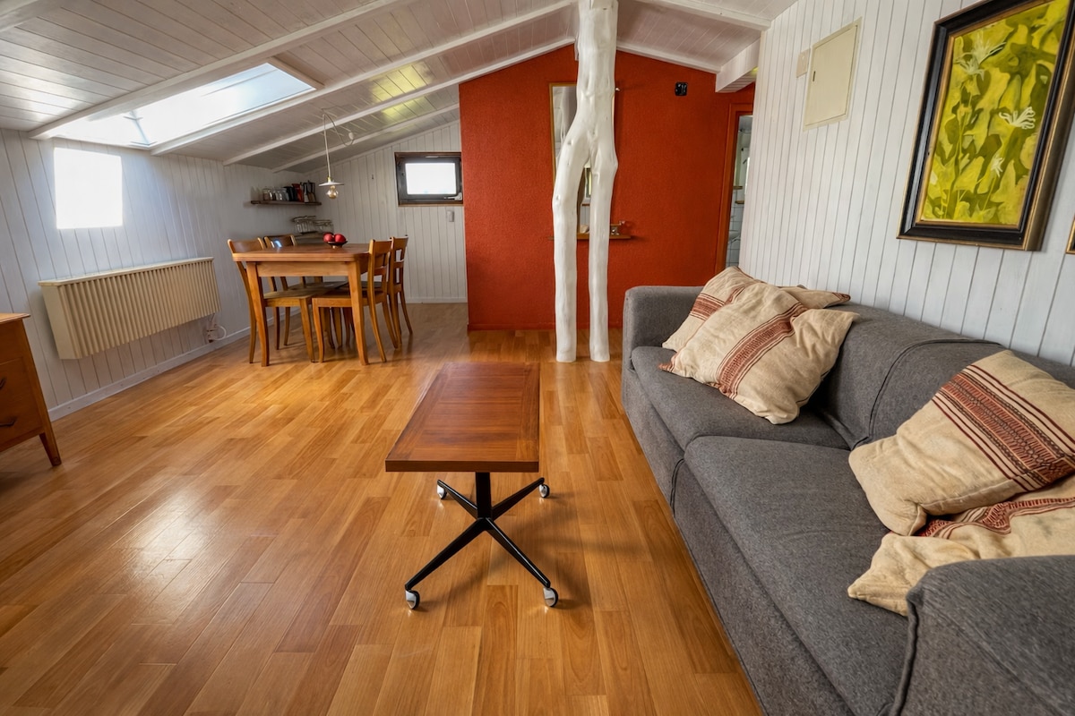 Скандинавський мебльований помешкання зі сніданком у відремонтованому 100-річному колишньому фермерському будинку. У оранжереї та на першому поверсі живуть 3 канікули. У квартирі на першому поверсі є: спальня з видом на гори | Дитяча кімната/бібліотека | Інфрачервона сауна | Їдальня/вітальня зі шведською плитою та диваном-ліжком | кухня | невелика ванна кімната. Висота кімнати у ванній кімнаті, у дитячій кімнаті та в спальні - 1,83 м. Інші кімнати зазвичай високі. PanoramaCard Thunersee (картка гостя) передбачає знижки.