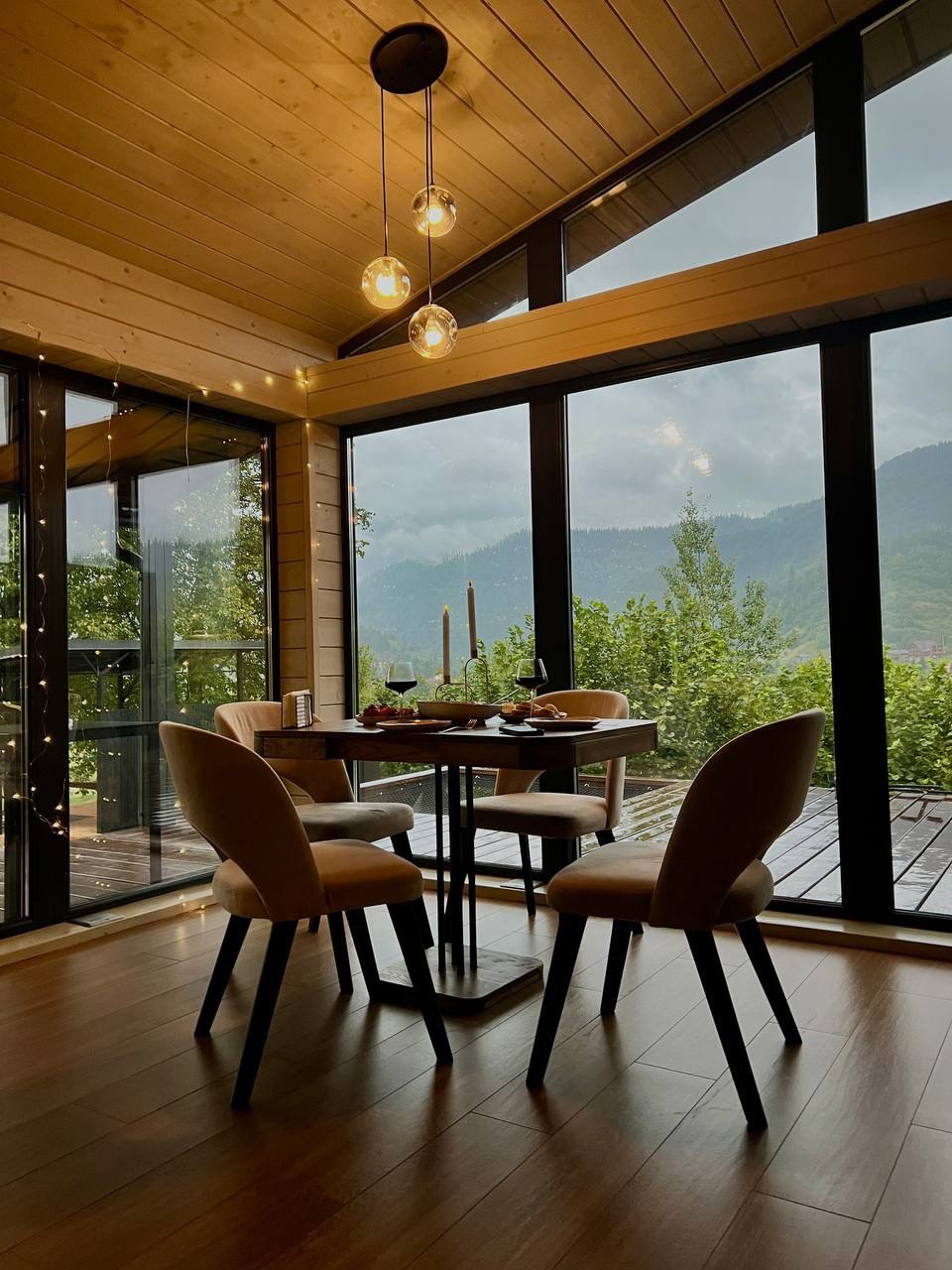 Чарівний коттедж із дерева та каменя, розташований майже на самій вершині гори Погар. Із будинка відкривається чудовий вид на гірську місцевість, річку Опір, що протікає вздовж самого міста Славське, яке знаходиться в долині гір.