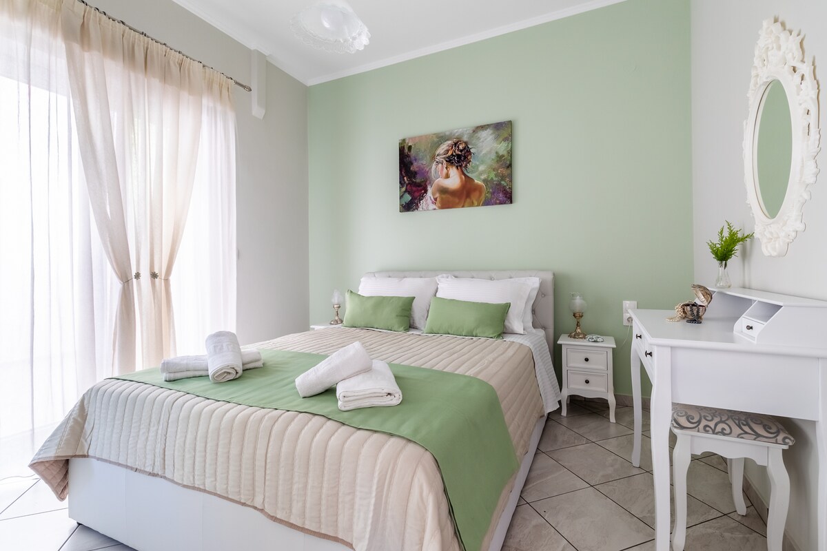 ♥♥♥Kick back and relax in this calm, stylish and luxurious apartment surrounded by a lush green garden. ♥♥♥ Rest assured that the all your needs will be met with a fully equipped kitchen and a large stone-built outdoors BBQ facility. A luxurious stay for your well-deserved unforgettable vacations in Skopelos!