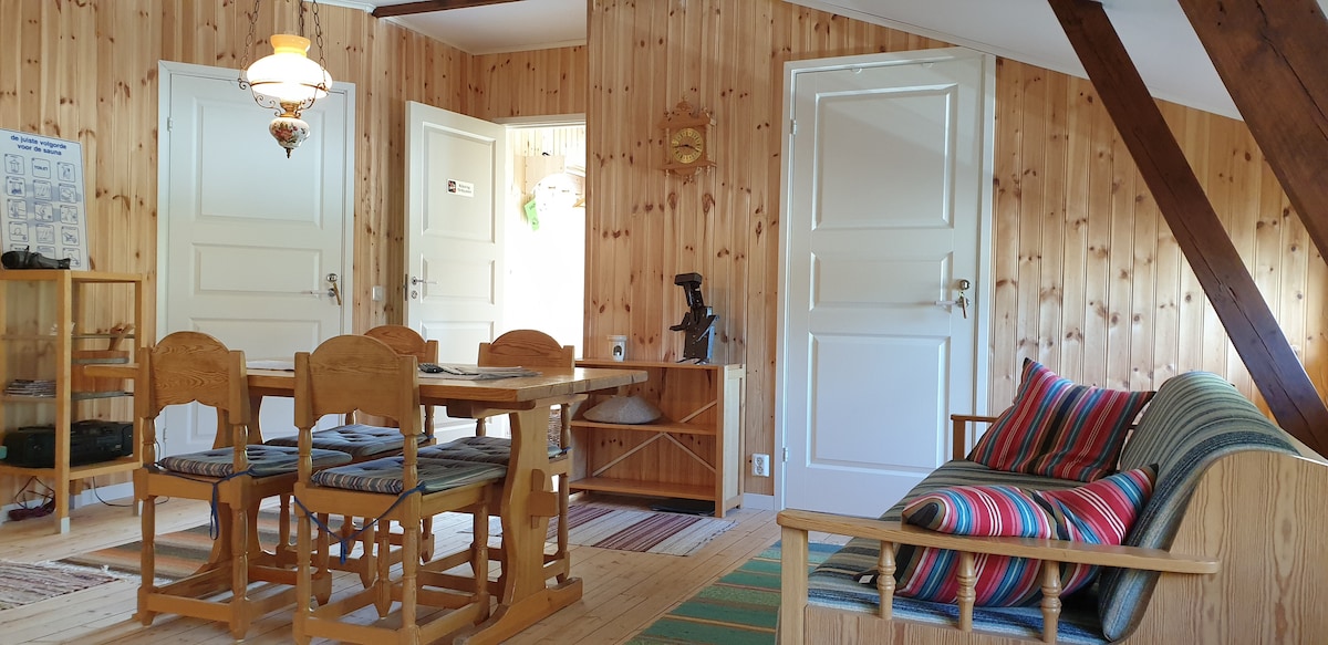 «Välkommen» у нашому затишному зрубі! Двокімнатний будинок на двох поверхах розташований з чудовим видом на південний пляж нашого Fyrsjön. На першому поверсі є двоспальне ліжко, і до 4 осіб можуть комфортно спати під похилим дахом на верхньому поверсі. Стиль старих балок, вид з вікна озера, каное та наша нова БОЧКОВА САУНА (включено) роблять ваше перебування ідеальним! Кухня, душ та туалет знаходяться за 20 метрів у «бабусиному будинку», яким користуються всі гості!