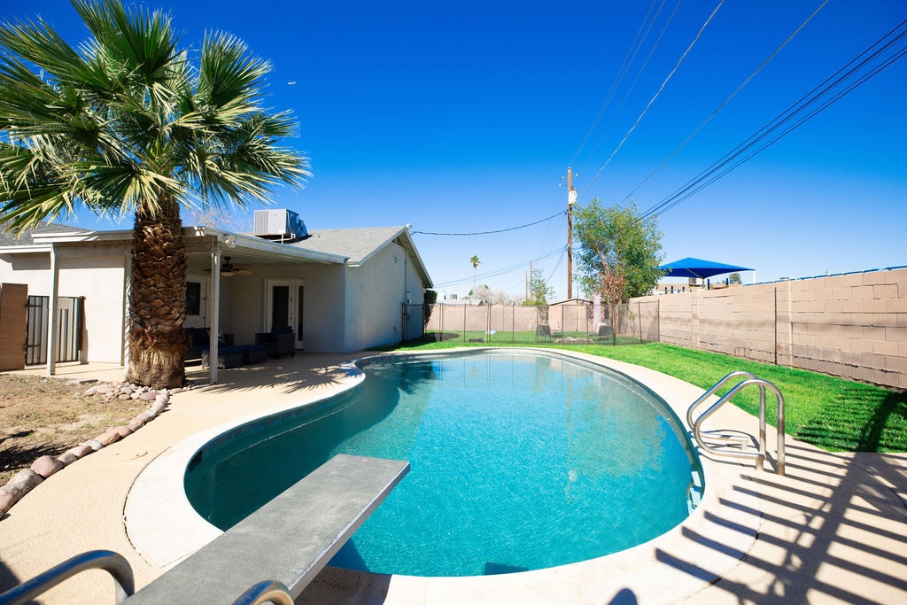 Ваша сім 'я буде ближче до всього, коли ви зупинитеся в цьому помешканні, розташованому в центрі міста. Стадіон «Чикаго Кабс» розташований неподалік. Він знаходиться в декількох хвилинах ходьби від легкорельсового та азійського району. Він розташований недалеко від центру Темпе, Скоттдейла, центру Мески з легким доступом до автостради в тихому житловому районі. Відпочиньте в басейні та на задньому дворі під час гриля або приготування піци в цегляній духовці. Власники живуть неподалік і готові допомогти з будь-якими потребами.