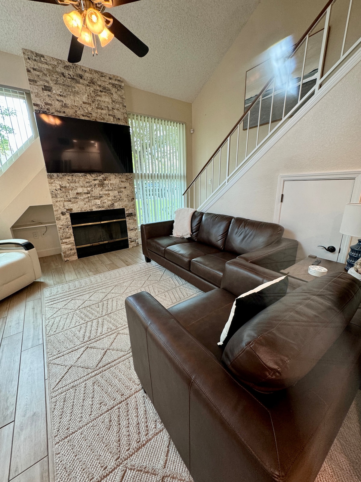 ** мінімальна тривалість перебування 30 днів ** Спустившись сходами мимо привабливого мистецтва на стіні, і сідайте на секційний диван, щоб насолодитися Netflix біля вогню. Склепінчасті стелі, а також дизайнерська підлога та настільне освітлення демонструють багато продуманих штрихів просторого інтер 'єру. - Пробіжка в сусідньому парку Mesa Riverview Park, перш ніж вирушити в парк Слоун і стадіон «Кабс». Прогуляйтеся до ресторанів і магазинів, а центр Темпе пропонує багато інших. Університет штату Аризона також знаходиться неподалік, а зоопарк Фінікса знаходиться в 15 хвилинах їзди. Переглянути всі оголошення: https://www.airbnb.com/users/56762365/listings