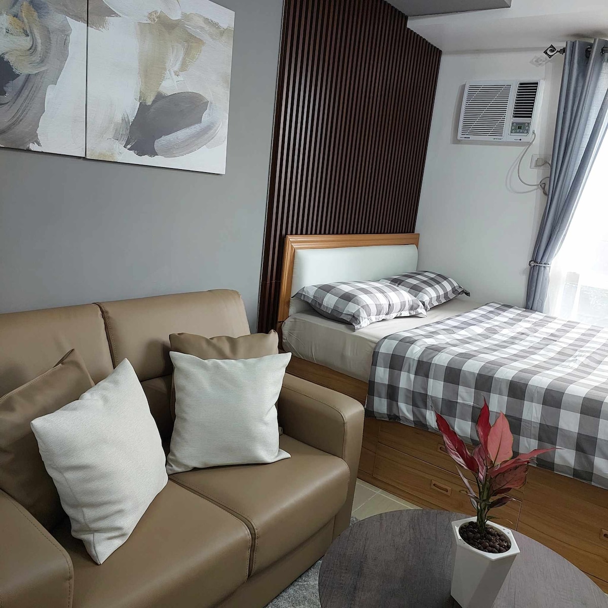 Відпочиньте в цій чарівній соковиній квартирі з однією спальнею, розташованою високо в SM Light Residences Tower 1. Насолоджуйтеся зручністю доступу до торгового центру, затемнюючи жалюзі для спокійного сну, а також захоплюючим видом на зручності басейну. Незалежно від того, працюєте ви чи досліджуєте, ви будете насолоджуватися високошвидкісним Інтернетом і стаціонарним телефоном, Smart TV (попередньо завантажений з підписками Netflix і Disney+) та міні-кухнею, перебуваючи всього в декількох хвилинах ходьби від центрального ділового району. Ваш затишний відпочинок чекає на вас!