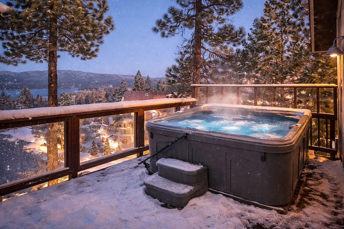 Пішки до курорту Big Bear Mountain . Приголомшливі заходи сонця з тераси . Можна з домашніми тваринами . A-Frame + Open Concept Lounge/Dining/Kitchen Повністю обладнана кухня з висококласним обладнанням Smeg + Hallman . Велика мебльована головна тераса з приголомшливим видом на озеро та ліс . Кімната для перегляду фільмів із проєктором високої роздільної здатності . Барбекю/гриль Пішохідні стежки прямо біля нашого порогу. Високошвидкісний Wi-Fi + робоче місце . Центральне опалення + каміни . Гідромасажна ванна на критій терасі, що пропонує приватність + мальовничі види цілий рік!