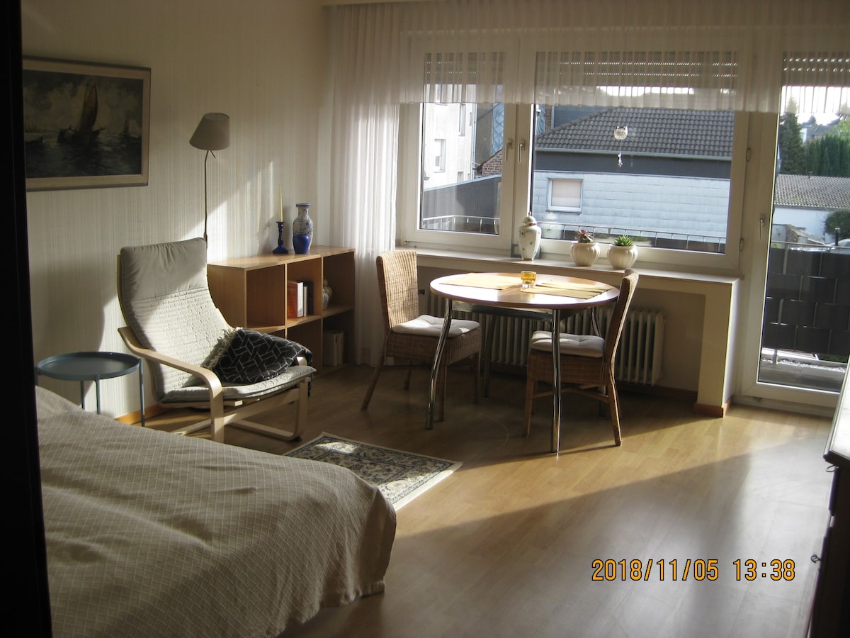 Відпочиньте й розслабтеся в нашій затишній 2-кімнатній квартирі з коридором, нещодавно відремонтованою ванною кімнатою та окремим входом. Квартира площею 40 кв. м сучасна і розташована на затишній вулиці з одностороннім рухом з хорошою інфраструктурою, безкоштовною парковкою та автобусною зупинкою в пішій доступності. Насолоджуйтеся фіксованою ціною на чай і каву. До супермаркету, пекарні, м 'ясника та заправки можна швидко дістатися. Вурмталь для доступу до природи знаходиться всього в 5 хвилинах ходьби.