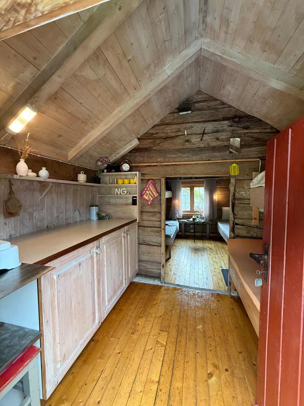 Тут можна насолоджуватися сільським середовищем, з видом на фьорди та гори. Зруб розташований у дворі, тому тут ви побачите і почуєте трактори, корів, собак і дітей, які граються. Це 3 хвилини ходьби до фіорда, і поблизу є багато можливостей для піших прогулянок. Центр міста з магазином і кафе по четвергах знаходиться в 1 км від зрубу. Відстань до Олдену близько 20 хвилин, Лоен - близько 25 хвилин, Стрин - 35 хв.