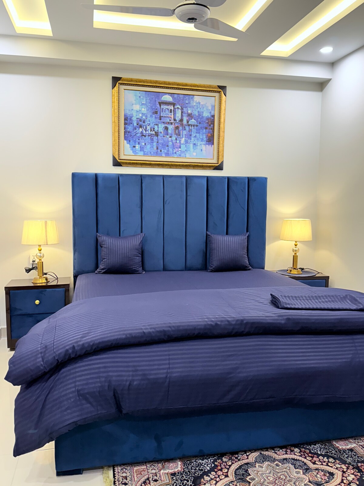 Ласкаво просимо до вашого приватного та спокійного відпочинку в резиденціях Sky Park One в центрі Гульберга, Ісламабад — вишукані апартаменти, що поєднують в собі елегантність і комфорт. Резиденція пропонує дві красиво оформлені спальні та розслаблюючу красиву вітальню, кожна з яких має свій унікальний шарм, що забезпечує виняткове перебування. В КВАРТИРІ КАТЕГОРИЧНО ЗАБОРОНЕНО КУРИТИ. ЦЕ ПРИЗВЕДЕ ДО ШТРАФУ В РОЗМІРІ 25000 РУПІЙ. БУДЬ ЛАСКА, КУРІТЬ ЛИШЕ НА БАЛКОНІ