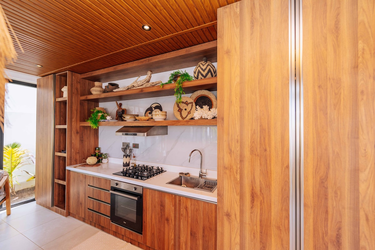 Стильна, сучасна квартира з резервним генератором, що виходить на один із найкрасивіших пляжів Занзібару. Перебуваючи прямо на пляжі, ви можете випити кави, поплавати рано вранці та помилуватися захопливим сходом сонця. Приєднуйтесь до футбольного матчу вдень. Літайте на повітряних зміях, скільки завгодно. Міні-кухня обладнана для легкого харчування, але поруч є ресторани. Не для любителів анімації. До послуг гостей безкоштовний безлімітний Wi-Fi.