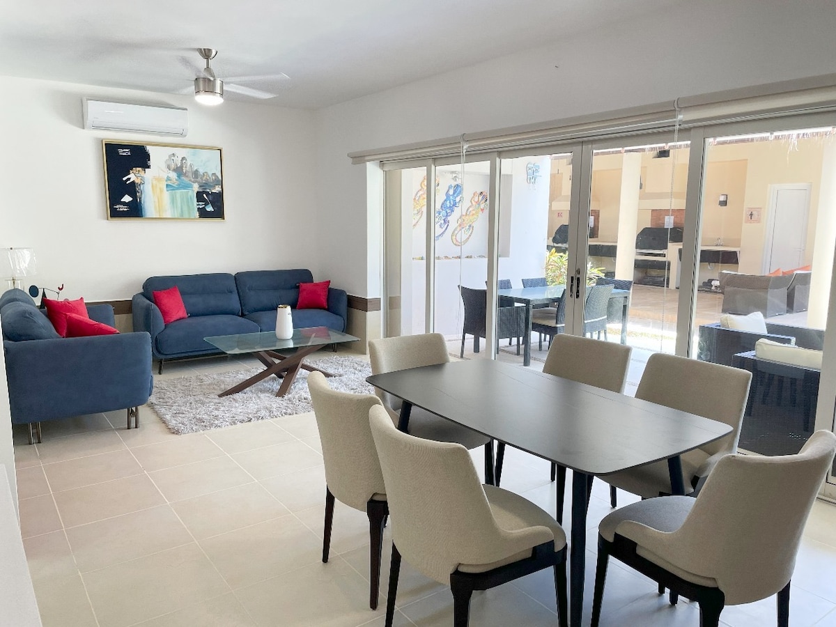 Excellently located in the tourist area within the Palmar del Sol Condominiums. Enjoy a spacious apartment with a beautiful view of the garden and pool. It's very comfortable for a family or group of 8, fully equipped with high-quality furniture, ready to move in. Parking, Wi-Fi, and security are available. Enjoy the renowned beach, Playa Mamitas, just two blocks away. Palmar del Sol has it all within reach!