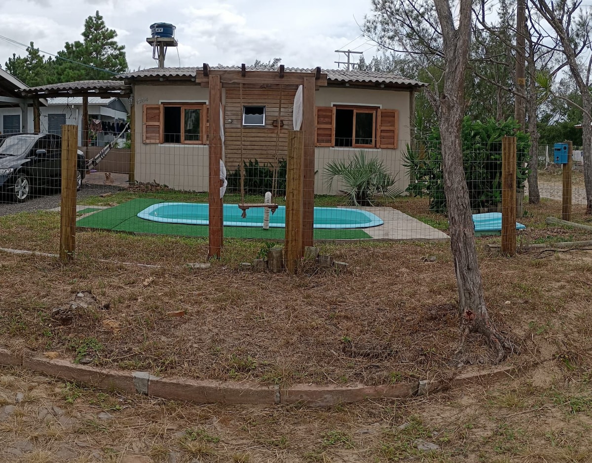 que tal trocar a correria do dia dia pelo balanço da rede o canto dos pássaros em meio a natureza, desfrute de momentos de tranquilidade e paz. casa com área de lazer com açude,piscina fogo de chão ,churrasqueira, playground e um lindo jardim. casa decorada e quipada com todos utensílios pra você ter um experiência incrível. super espaçosa com 170 MTS bem iluminada e arejada garagem p 2 carros. fica localizada no interior de balneário gaivota Figueirinha .
