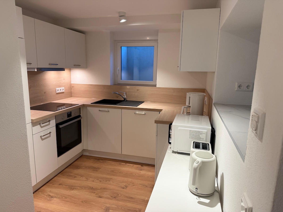 Гостюйте в чарівній квартирі в фахверковій будівлі культурної спадщини, що прилягає до колишнього монастиря з сотні-річною історією! Центральне розташування та унікальна суміш автентичного історичного колориту та сучасних зручностей для проживання зроблять ваше перебування незабутнім. Неподалік знаходяться всі пам 'ятки, музеї та ресторани Ротенбурга. Смачний сніданок і одне паркувальне місце включені до вашого бронювання! Ми використовуємо 100% відновлювану енергію.