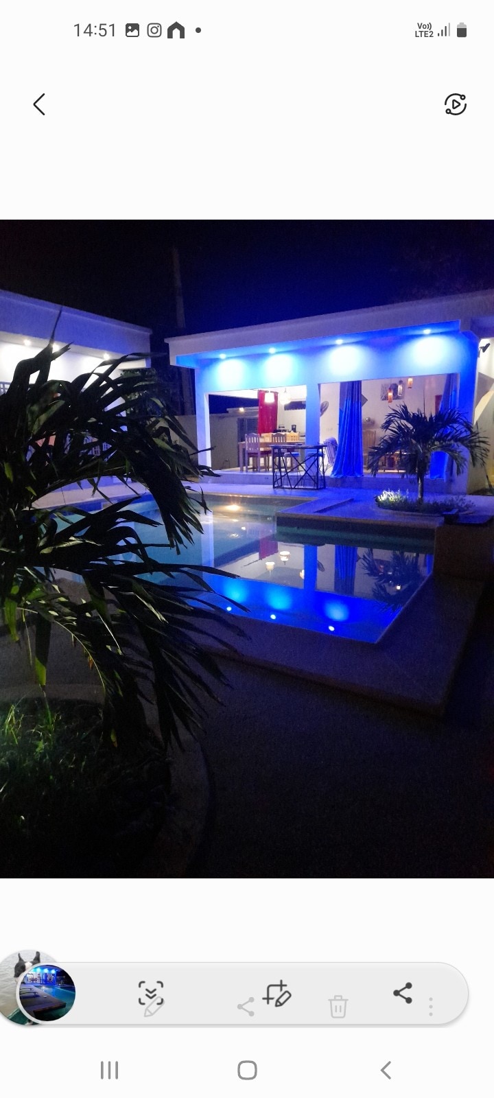 На найкрасивішому пляжі невеликого узбережжя Сенегалу, Красива вілла на набережній з безбортним басейном, великою хатою, великою перголою, чотирма спальнями, трьома ванними кімнатами, 1 приватним та 2 окремими туалетами, вітальнею їдальні. З захоплюючим видом на море, новою постільними речами, генератором, підключений Wi-Fi, Bluetooth, CanalplusMicroondesworldmenu NespressoFrigo Американський високошвидкісний оптоволоконний Інтернет