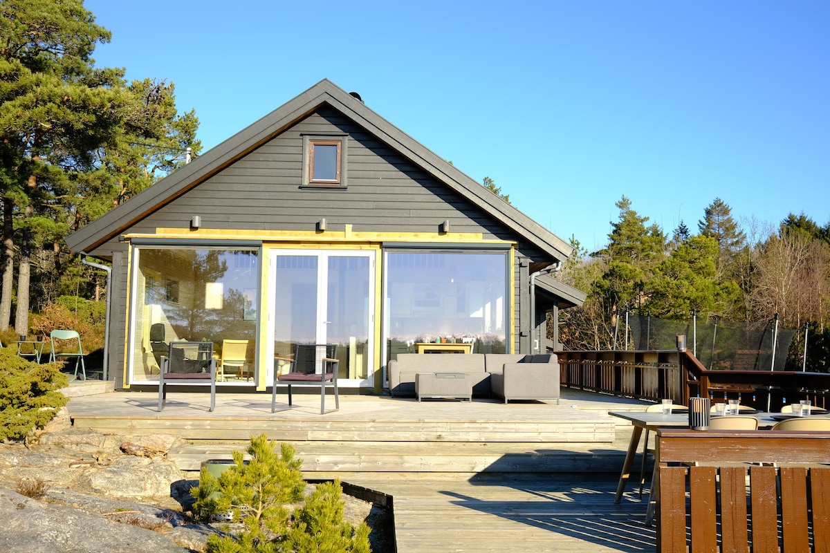 The cabin is surrounded by nature, with access to salt- and freshwater activities. Six-meter-wide panoramic windows open onto a sunny deck for barbecuing, sharing meals, lounging, or resting in the hammock. At night, light the fire pit, pop some popcorn, and enjoy the starry sky. Families will appreciate the child-friendly setup, while adults can enjoy the bright Scandinavian design. It's an ideal base for exploring beaches, woods, Kristiansand, Dyreparken Zoo, Aquarama, and more.