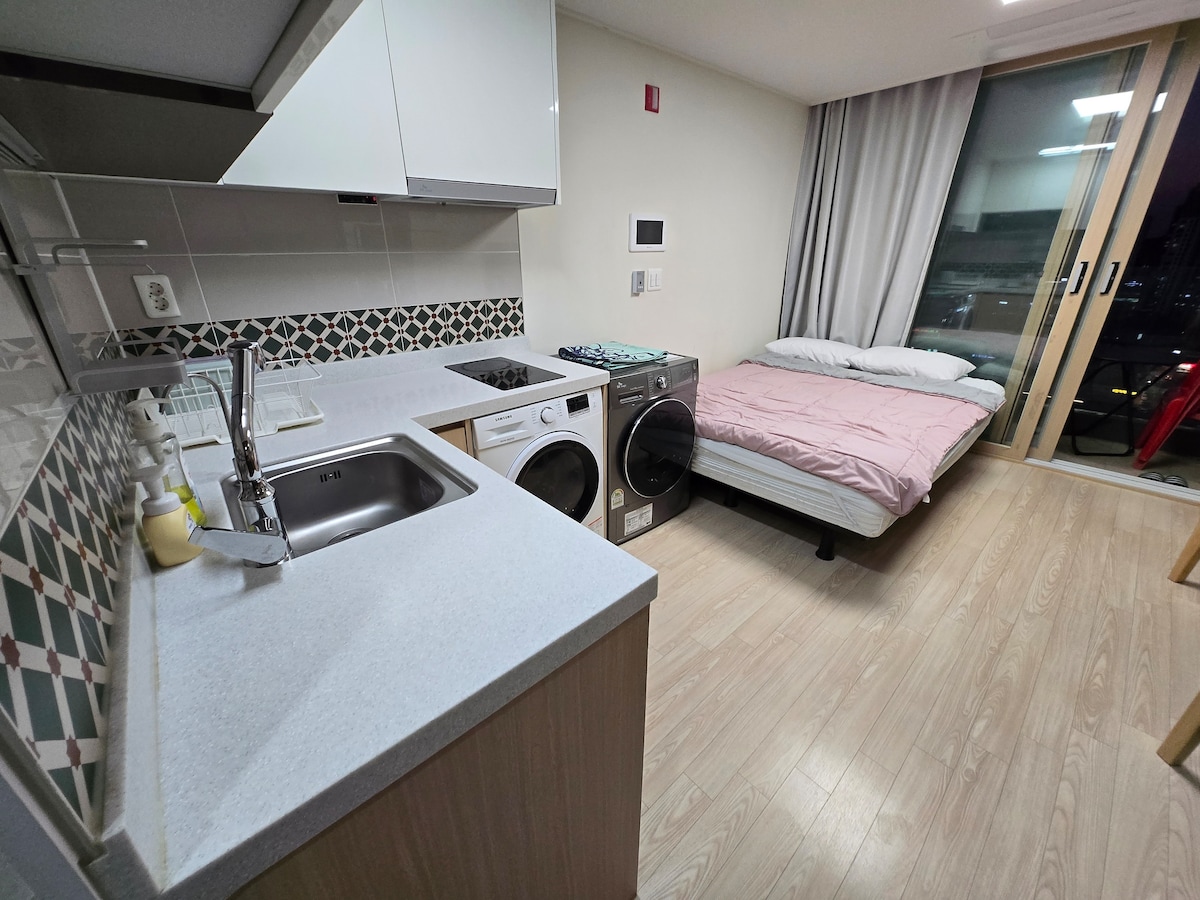 Це помешкання з особливими потребами та чистим стилем, розташоване недалеко від залізниці аеропорту Unseo Station від аеропорту Інчхон. Кухонне приладдя підготовлено, що забезпечує комфорт як для тривалого, так і для короткострокового перебування. Це ▶ безконтактна пряма реєстрація прибуття. ▶ Ми надішлемо вам номер кімнати та інструкції щодо прибуття в день прибуття. Коли ви прибудете до помешкання, ви можете увійти в кімнату безпосередньо без процедури реєстрації прибуття. Оголошення Прибуття: 15:00 Виїзд: 11:00 Посібник із помешкання та зручностей Інформація про простір і матеріали [спальня] Ліжко розміру Queen size/смарт-телевізор/OTT (особистий акаунт)/ Жалюзі/шифонові штори/круглий стіл/стілець/постільна білизна на підлозі (1 особа) - оплачено [кухня] Морозильна камера • Холодильник/індукційний/мікрохвильова піч/кавоварка/кружка/диван каструля/сковорода/посуд/набір посуду [ванна кімната] Шампунь/кондиціонер/гель для душу/мийка для рук/килимок для ніг/сушильна машина Одноразові предмети (зубна паста, зубні щітки тощо) надаються за окрему плату відповідно до урядових правил.