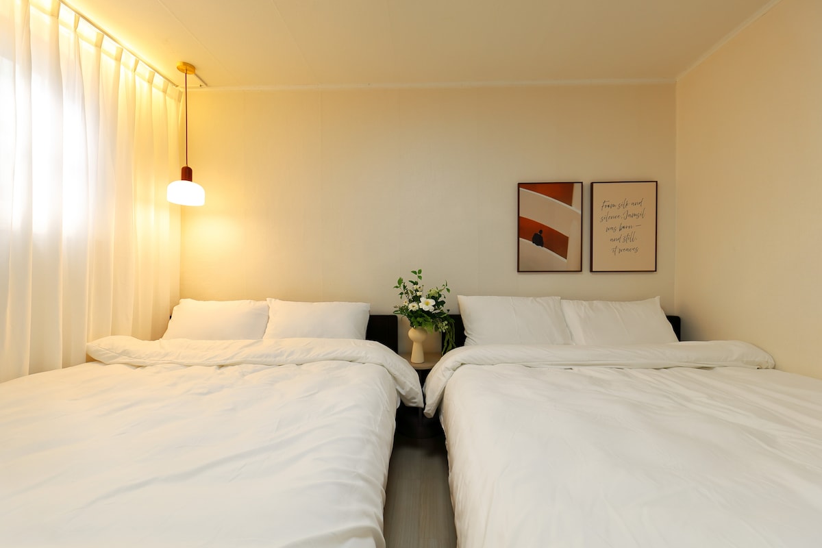 Ласкаво просимо до Коконе з природою в місті. Багато людей полюбляли Cocone № 1, тому ми відкрили Cocone № 2. ^ ^ Концепція інтер’єру схожа на перший магазин, але Cocone № 2 — це мила будівля з 2 кімнатами, тому її добре буде використовувати, якщо ви подорожуєте наодинці або з 2 до максимум 6 осіб. Другий магазин також є місцем, яке ми прикрасили з турботою, тому я сподіваюся, що ви будете відпочивати комфортно і вам дуже сподобається. ^ ^ * Cocone № 1 може вмістити до 8 осіб у 3 кімнатах. Крім того, ми сподіваємося, що у вас залишиться багато приємних і особливих спогадів, тому ми ретельно підготували для вас матраци та постільну білизну преміум-класу Sealy в 5-зірковому готелі. Насолоджуйтеся YouTube і Netflix з комфортом на додатковому 65-дюймовому телевізорі. Сподіваюся, ви зможете прогулятися прекрасним Олімпійським парком і озером Сокчон у місті, де можна відчути зміни чотирьох сезонів, і відновити сили на природі ^ ^