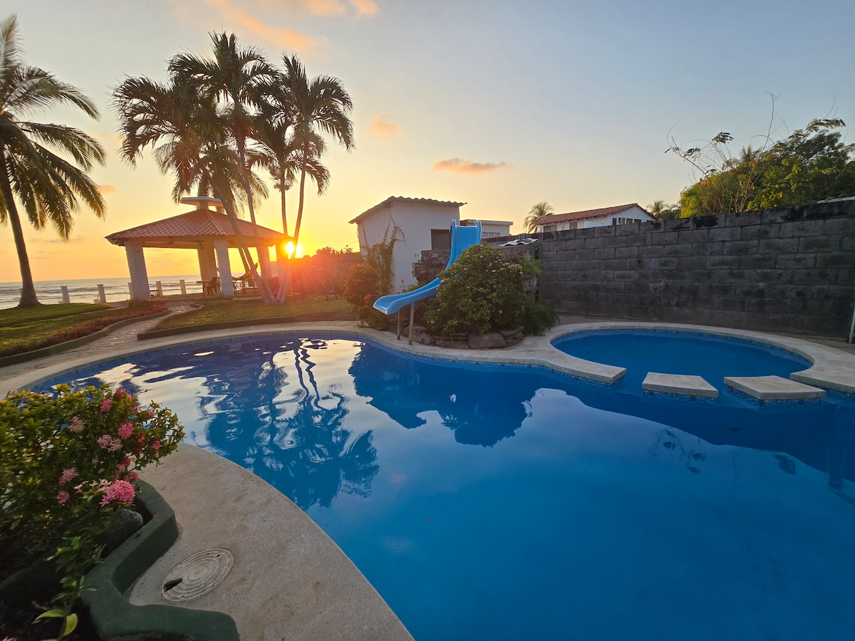 Ласкаво просимо до Dream House! Відпочиньте на абсолютно новій розкішній велнес-віллі на березі океану, розташованій прямо на березі Тихого океану в Санта-Ізабель-Ішуатан, Сонсонате, Сальвадор. У цьому помешканні високого класу на березі океану є 4 просторі спальні апартаменти з нескінченним видом на океан, басейн і тропіки. Прогуляйтеся щоденним сходом і заходом сонця на пляжі. Насолоджуйтеся безкоштовним сніданком «шведський стіл» та свіжими фруктами прямо з нашого саду. Масаж, йога, серфінг тощо Ідеальне розташування для приватної та корпоративної оренди.