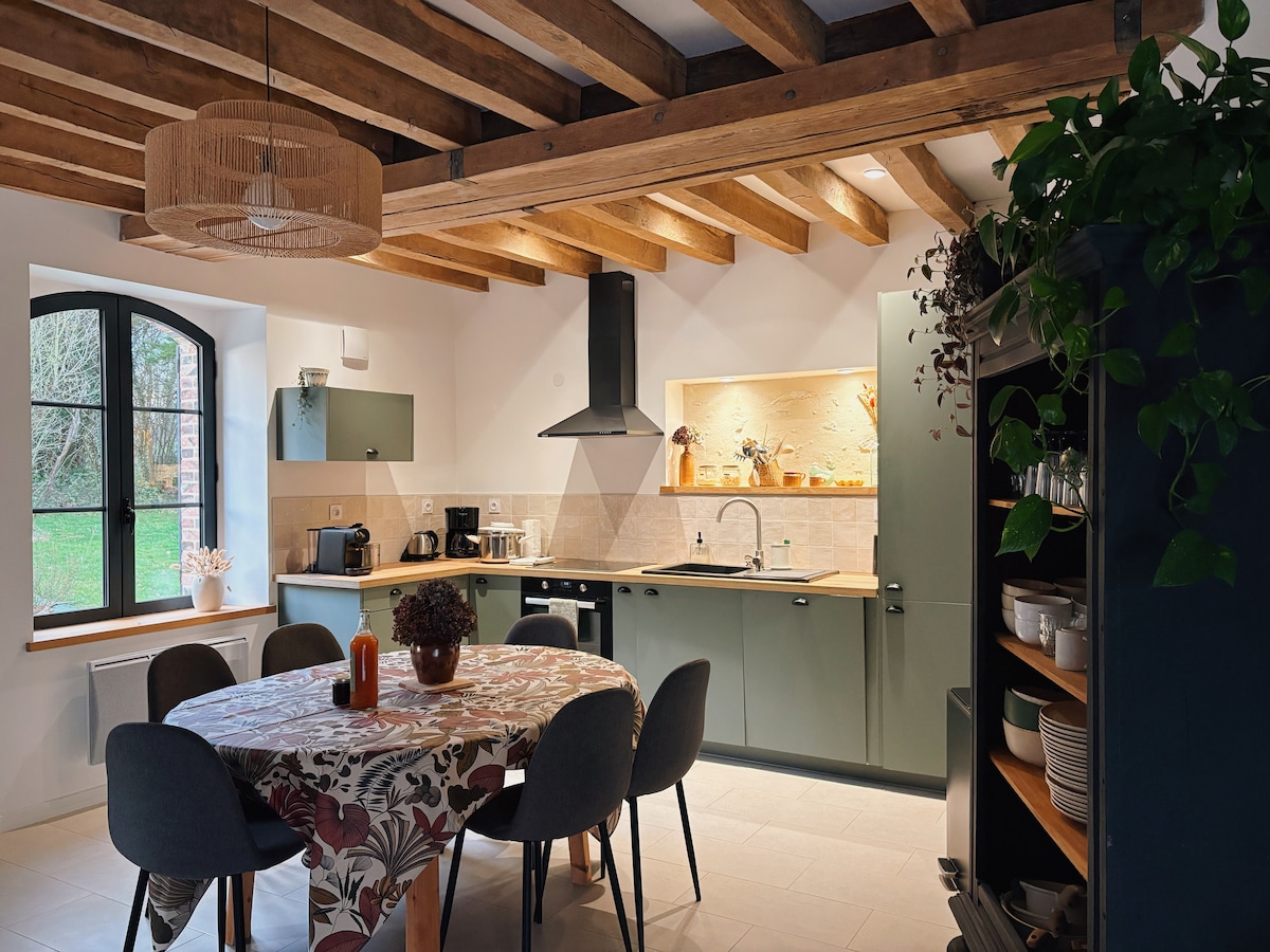 Located in the heart of the Perche region, less than 2 hours away from Paris, come and relax in this typical Percheron house, fully renovated with stone walls, exposed beams, bricks and terracotta floor tiles. The property is set in one hectare of land with an orchard, a garden and a large park with sheeps, all not overlooked. The house has two terraces: the main one faces east and overlooks the park, while the second faces west, so you can enjoy the outdoors as the sun shines.