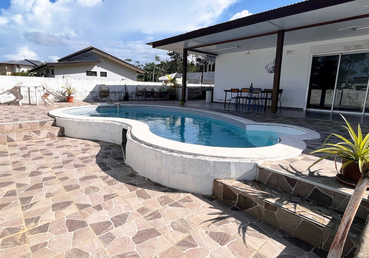 Красивий 3-кімнатний дерев 'яний будинок, в затишному житловому районі. Будинок знаходиться посеред саду площею 4000 м2, з приватним басейном, на краю державного лісу Мон-Матурі. Будинок, тим не менш, добре розташований, оскільки знаходиться за адресою: - 5 хвилин від торгових центрів, кінотеатрів. - 15 хвилин від центру Кайенни. - 15 хвилин з аеропорту. - 5 хвилин до першого пляжу. Ви будете спокійні, далеко від дорожнього руху, і в центрі природи. Тож ласкаво просимо. Сильвен