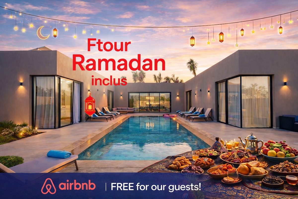 Ви коли-небудь уявляли, що вирушаєте в захоплюючу подорож яскравими вулицями Марракеша? Перестаньте мріяти і починайте жити! Ця унікальна квартира - справжня перлина, яка чекає на ваше бронювання. Розташоване в межах досяжності від усіх чудових місць і зручностей, ваше перебування обіцяє бути чарівним враженням. ✔ Безкоштовна кава та чай <3 ✔ Wi-Fi без швидкості Ліжко розміру «✔king-size» ✔ Безкоштовна пральна машина Постільна білизна✔ найвищої якості «Бекендорфф» ✔ Приватний критий басейн ✔ Великий смарт-телевізор